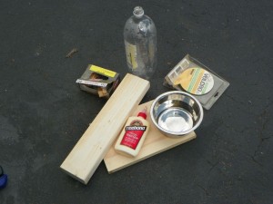 El tablón no tiene que ser muy alto, sólo debes asegurarte de que sea casi tan alto como la botella de agua.