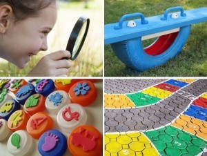 - Juegos para el jardín con neumáticos reutilizados: Los neumáticos o cubiertas viejas se utilizaron tradicionalmente para hacer Hamacas, ¡pero puedes usar tu creatividad para equipar un parque entero! Con ellos puedes crear un arenero, un sube-y-baja, un túnel, un tobogán, o lo que se te ocurra.
