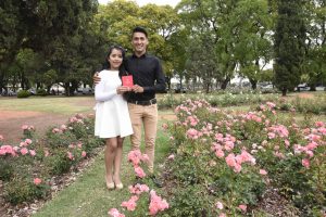 “La experiencia de ser los primeros nos hace sentir privilegiados, gracias a Dios el tiempo acompañó”, expresaron los jóvenes de 21 años que estrenaron al Rosedal como sede de casamientos civiles. “Es un lugar muy hermoso, dar el sí acá fue muy importante para nosotros”, agregaron.