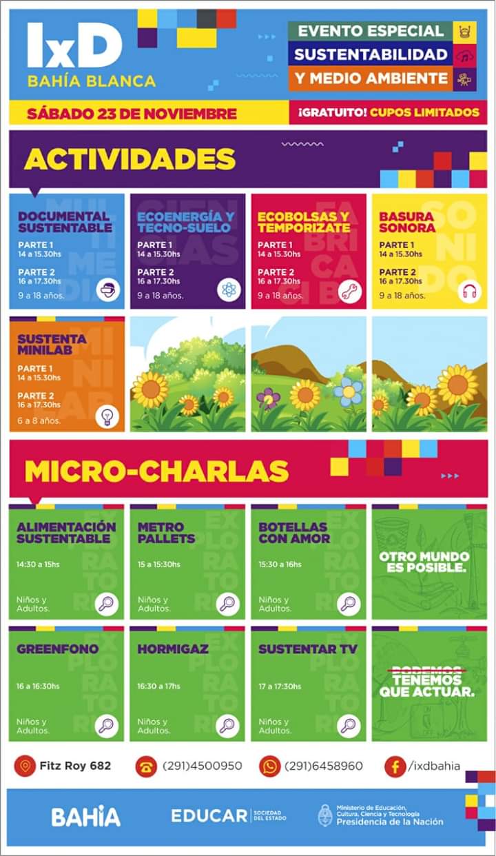 Sábado23 de noviembre en #IxDBahíaBlanca, centro de innovación educativa de Educar Sociedad del Estado.