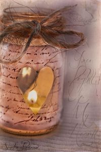 gamento de barniz, también conocido como “mod podge” , aunque también puede servirte un poco de cola blanca con agua. Coloca además unos pequeños corazones hechos con papel de seda y una vela pequeña pegada en el interior.