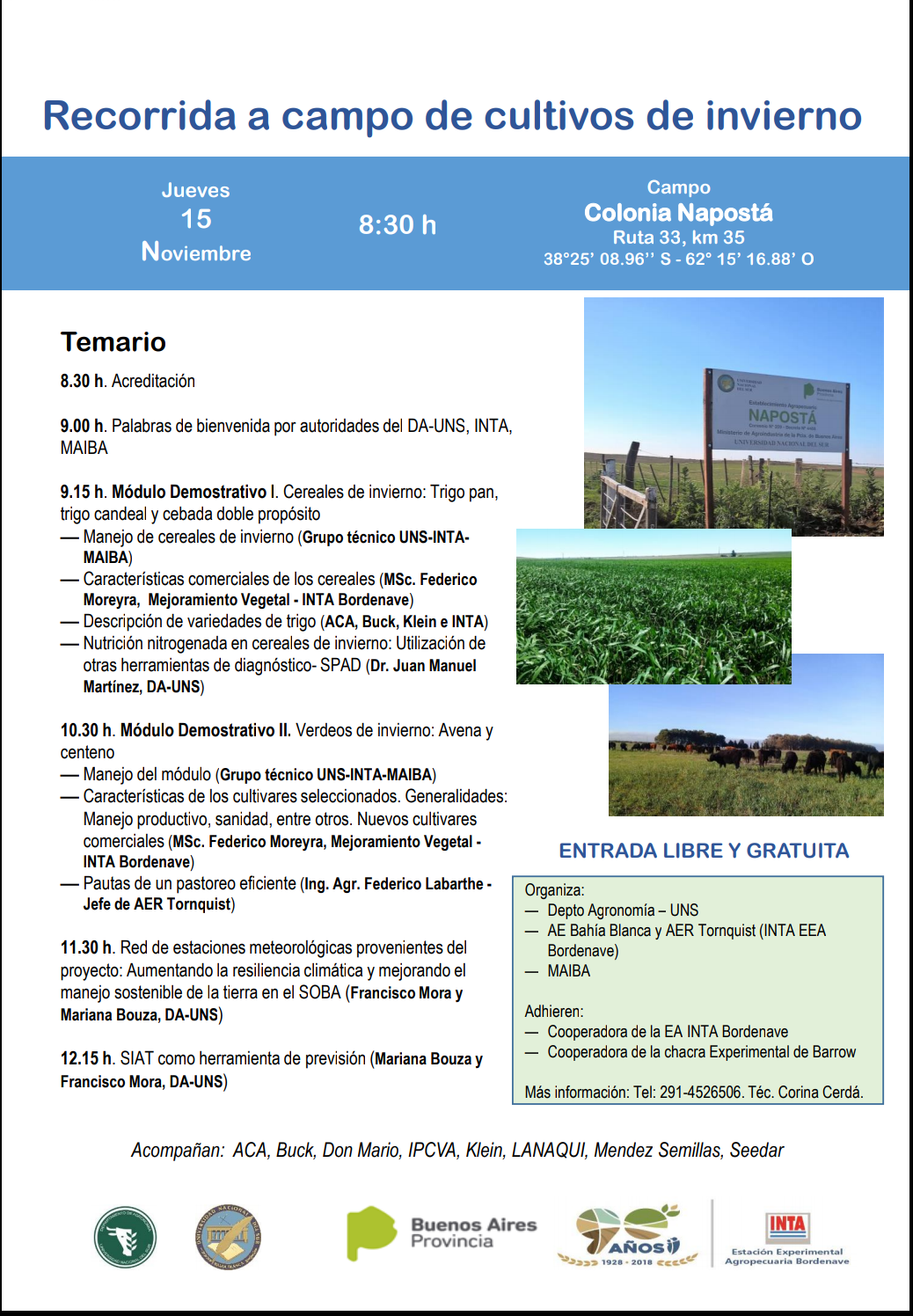 Dpto. de Agronomía (UNS), Agencias INTA Bahía Blanca y Tornquist (EEA Bordenave) y MAIBA.