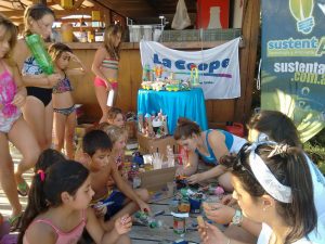 Chicos de todo el país que disfrutaban de unas hermosas vacaciones en la ciudad de Monte Hermoso, Necochea, Quequén y Pehuencó, pudieron participar del taller de Juguetes ECO haciendo muy buenas creaciones donde tímidamente muchos padres colaboraron y hasta crearon sus propios diseños.