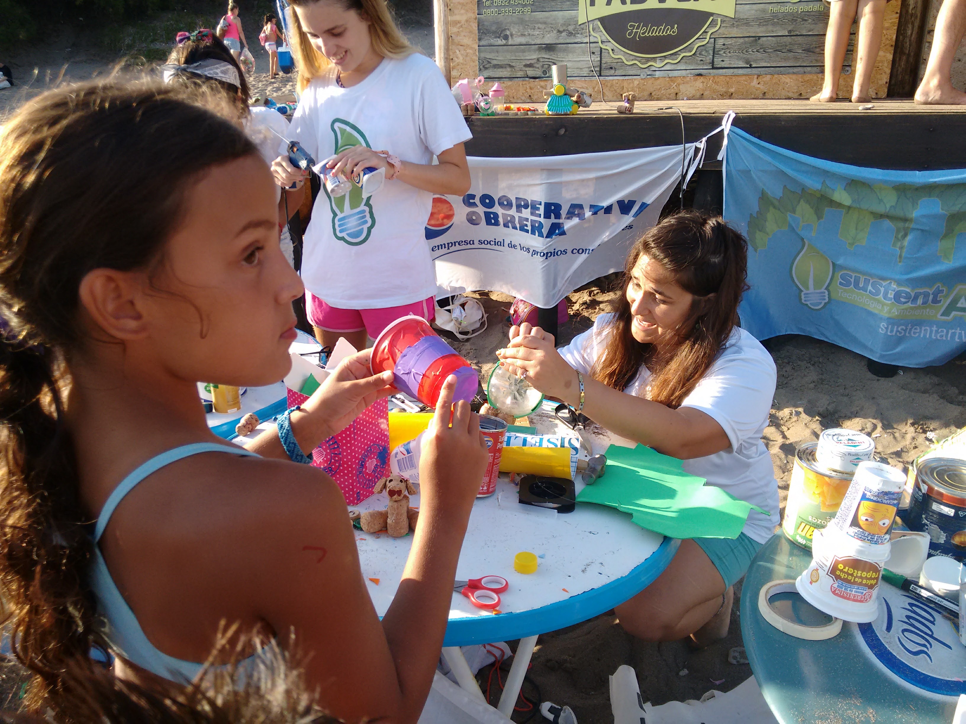 Chicos de todo el país que disfrutaban de unas hermosas vacaciones en la ciudad de Monte Hermoso, Necochea, Quequén y Pehuencó, pudieron participar del taller de Juguetes ECO haciendo muy buenas creaciones donde tímidamente muchos padres colaboraron y hasta crearon sus propios diseños.