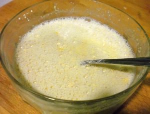 3. Mezcla por separado, en un bol, la harina de garbanzo con el agua hasta que la textura sea similar a la del huevo. Condimenta con sal.