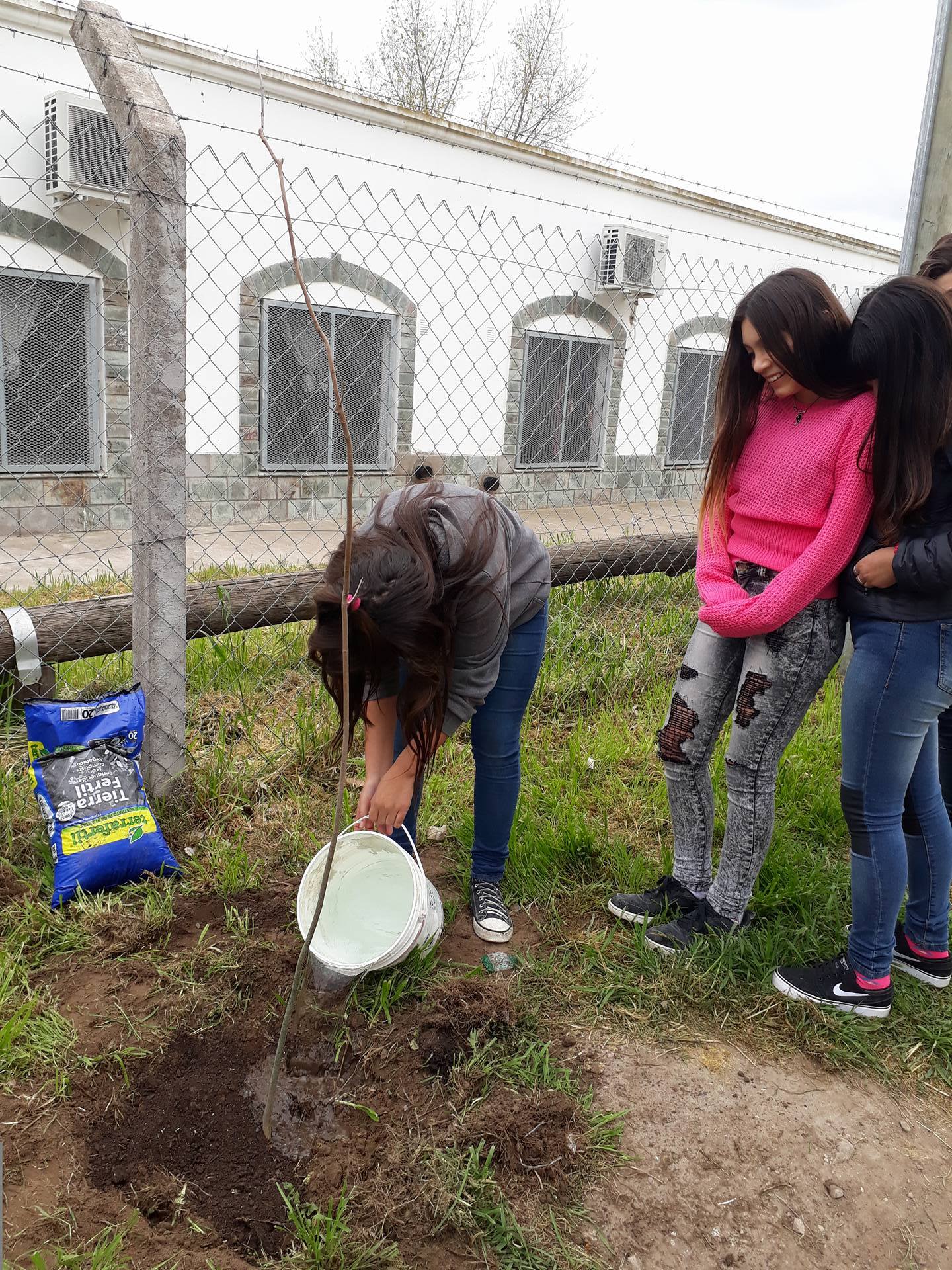Se colocaron árboles en el frente de la escuela secundaria. Fresnos son las especies arbóreas elegidas por la gente del INTA.