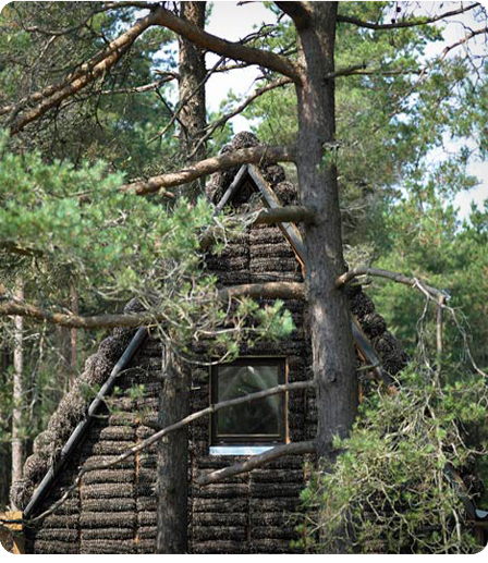 Este es un original proyecto de Dinamarca, una casa revestida con algas.
