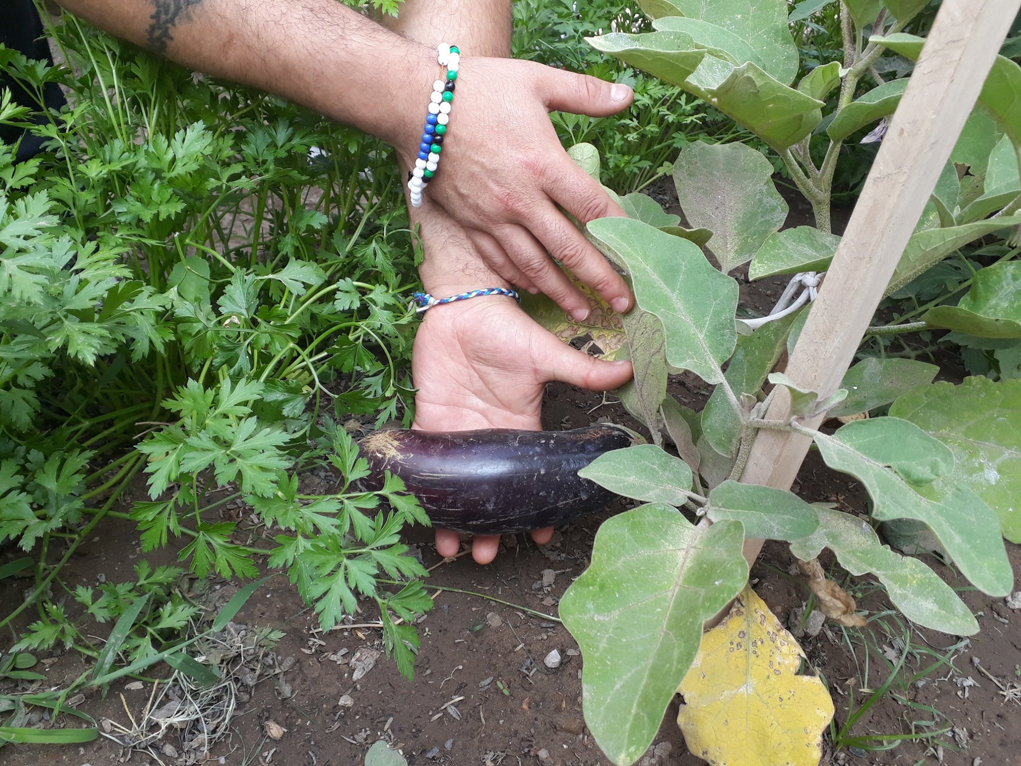 Le digo a Oscar que la huerta está hermosa, muy prolija, con sectores definidos y varios detalles que demuestran el muy buen trabajo que están haciendo. Señalo especialmente los tomates, zapallos y berenjenas que están asomando. Y me responde con el primer indicio de que lo que está haciendo ahora lo está proyectando para su afuera: “Lo productivo hoy es lo que menos valoro, lo más importante es lo que estamos aprendiendo y la posibilidad de trabajar” Además, Oscar dice que esto es una verdadera terapia: “Nos permiten salir a trabajar en la huerta a la mañana y por la tarde, por eso yo digo que nosotros también tenemos que mostrar interés, así esto crece”