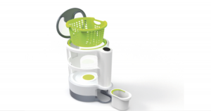 Su prototipo, que destacó en la categoría de Diseño Industrial, mide 100 centímetros de alto por 60 de ancho. Posee contenedores transparentes, una pantalla led táctil, un anillo rotatorio de montaje donde se ubica la canasta para depositar las vestimentas, un difusor de O3 y una cubeta en la que cae el agua.