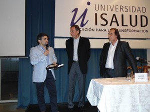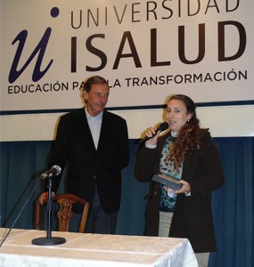 Silvia Barbosa, Coordinadora del Programa, Claudia Legnini Vicerrectora de la Universidad y los alumnos Alberto Benvenutto y María Reclade.