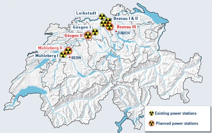 Actualmente Suiza cuenta con cinco centrales nucleares; estas producen 22,1 TW anuales de electricidad y que pueden seguir en funcionamiento mientras cumplan las normas de seguridad. Las centrales deberán cerrar de aquí a 20 o 30 años. Estas centrales corresponden aproximadamente 1/3 de la generación de energía. Y el resto proceda de centrales hidroeléctricas y en menor medida de centrales termoeléctricas y de varias fuentes de energía renovable.